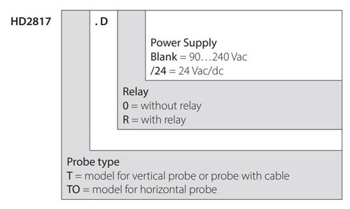 The instruments of the HD2717T… and HD2817T… series are transmitters, indicators, and ON/OFF regulators with data logging functions; they measure temperature and humidity.The models of the HD2817T… are fitted with a graphic 128 x 64 backlit display. The main feature of these instruments is their interchangeable probe.The probe can be replaced by the user without process interruption. Thus, the probe can be calibrated or repaired at a later time. The instrument is available in different versions: with horizontal probe (S.TO), vertical probe (S.TV) or with remote probe (S.TC), having the probe connected to the electronics by means of a cable of various lengths. The S.TO and S.TV probes are made of stainless steel AISI304, the S.TC probes can be of stainless steel AISI304 or Technopolymer PBT (plastic material).